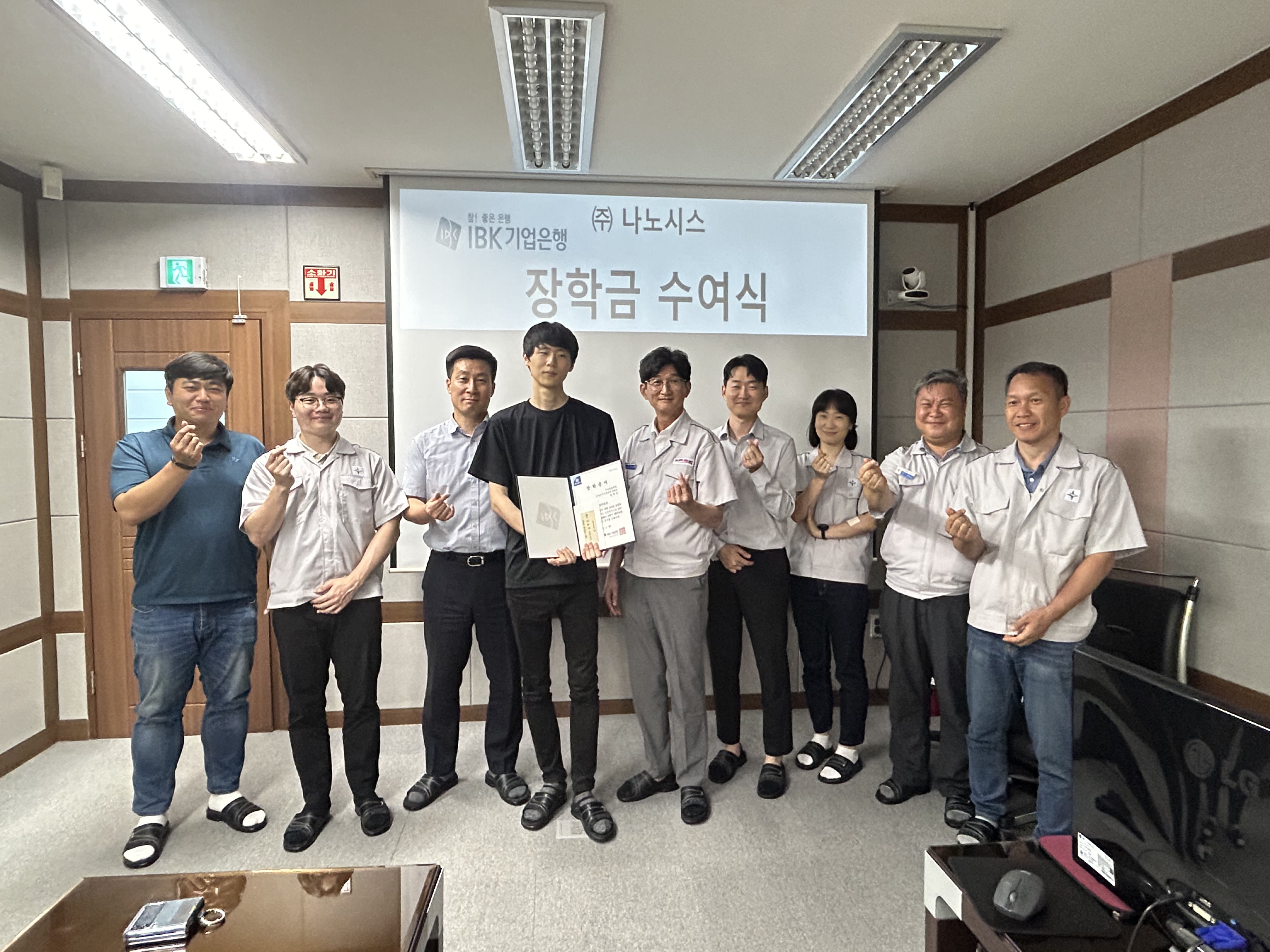 IBK행복나눔재단 주최 장학생 선발과정에 당사가 추천한 김*민 사원이 최종 선정되었으며, 이를 축하하기 위한 장학금 수여식의 자리를 마련했습니다. 앞으로도 당사는 직원들의 복지와 관련하여 당사 내/외부에서 실시되는 각종 행사 및 관련된 혜택을 적극적으로 파악하여 다양한 복지 증진에 최선을 다하겠습니다.